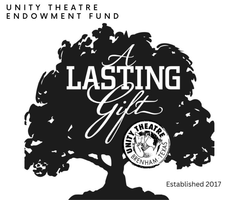 The Unity Theatre Endowment Fund was established in 2017 by Andy and Pegge Bogle to build a sustainable financial future for Unity Theatre. The fund was set-up in partnership with the Community Foundation of the Brazos Valley, a non-profit organization based in Bryan, that supports community organizations throughout our region.